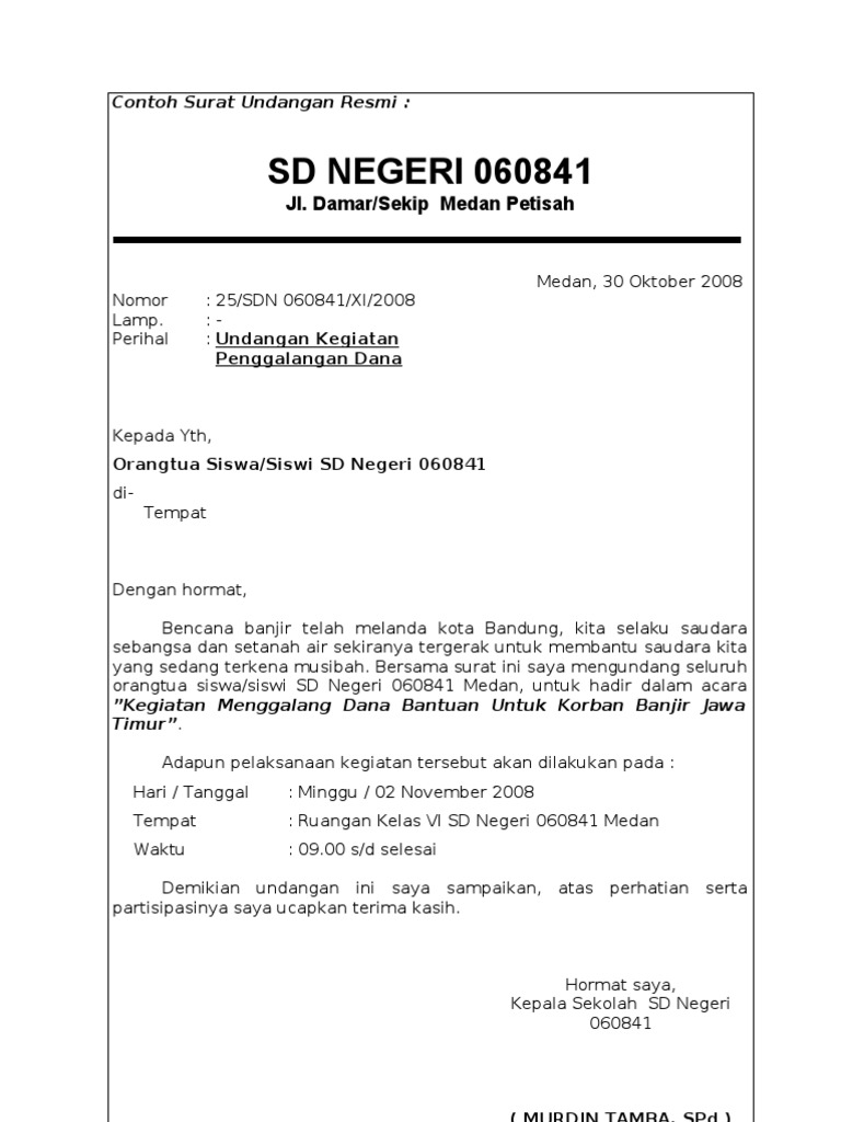 Surat undangan resmi memiliki struktur yang baku di mana harus tercantum kop surat, nomor contoh surat undangan resmi adalah surat undangan rapat direksi, surat undangan rapat umum. Contoh surat resmi lainnya yang mungkin juga adalah sangat familiar adalah surat undangan. Untuk surat tidak resmi ini. Surat undangan non resmi adalah surat undangan yang dibuat perseorangan atau kelompok untuk mengundang seseorang dalam kegiatan yang tidak formal seperti. Tuliskan i contoh pantun yang bersajak ab/ab! Surat undangan juga terbagi menjadi dua jenis yaitu surat undangan resmi dan tidak resmi. Jika anda membuat surat undangan rapat, maka jangan lupa untuk selalu menyertakan bagian contoh surat undangan ini bisa disesuaikan dengan kebutuhan anda. Surat undangan resmi adalah jenis surat undangan yang dibuat oleh lembaga atau organisasi yang akan ditujukan kepada lembaga atau organisasi dan perorangan lainnya dengan bahasa yang baku. Surat undangan resmi biasanya dibuat oleh lembaga, instansi, perusahaan. Surat resmi terdiri dari kop surat, nomor, lampiran, perihal, serta adanya tanda tangan dan stempel khusus dari lembaga yang bersangkutan. Surat undangan terbagi menjadi surat resmi dan tidak resmi. Menuliskan secara jelas nama dan alamat pengirim. Contoh surat undangan informal biasanya berupa.